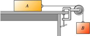 Block A has weight w_A and block B has weight w_B Once block B is set into downward motion it descends at a constant speed. Pull the block away from the PhotogatePulley System until the hanging mass is almost up to the pulley. The coefficient of kinetic friction between the lower block and the level table is 020.