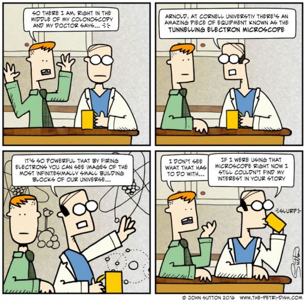 Frasier to an obnoxious caller. Responding to a caller Roger at Cornell University they have an incredible piece of scientific equipment known as the Tunneling Electron Microscope. The infinitesimal minute building block of our universe.